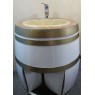 Tonneau lavabo en chêne. Ce tonneau lavabo est équipé d'un vasque en céramique couleur or et d'une robinetterie couleur or à 3 trous design avec 1 jet et 2 poignées design. Il...