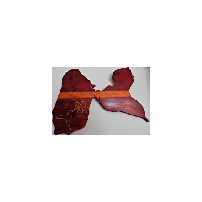 Une très jolie carte de Guadeloupe en bois teinté...