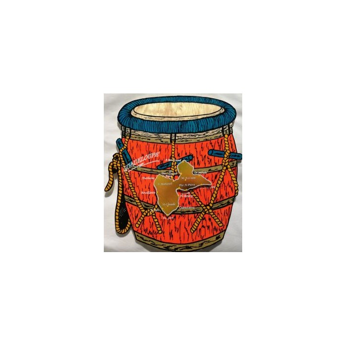 Une très jolie carte de Gwo ka avec carte de la Guadeloupe en bois teinté pour décorer votre intérieur .