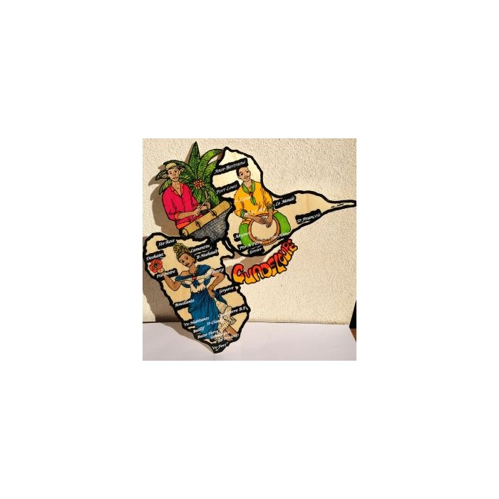 Une très jolie carte de la Guadeloupe en bois teinté...
