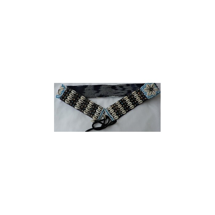Ceinture composée de perles en bois et coquillage.