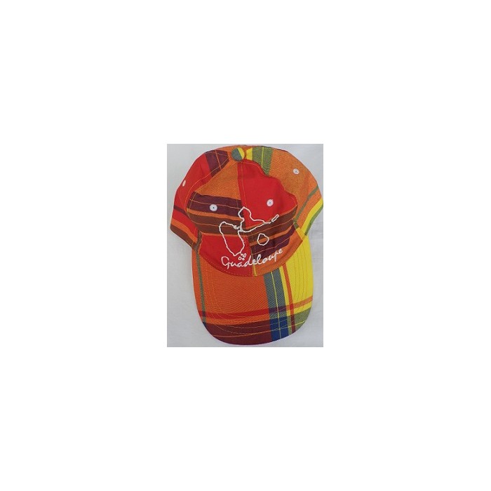 Casquette madras avec la carte de la Guadeloupe et inscription Guadeloupe