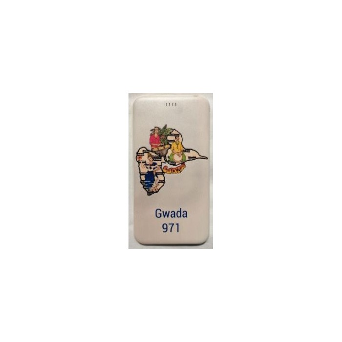 La batterie est estampillée avec la carte et le drapeau de la Guadeloupe.