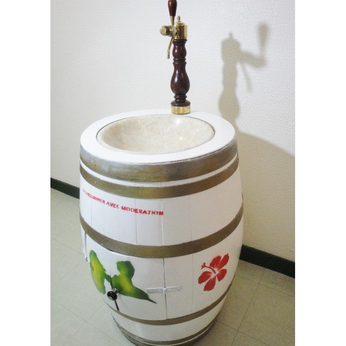 Cette fontaine est décoré d'une belle carte de Guadeloupe d'une hibiscus et d'un colibris sur la ceinture .