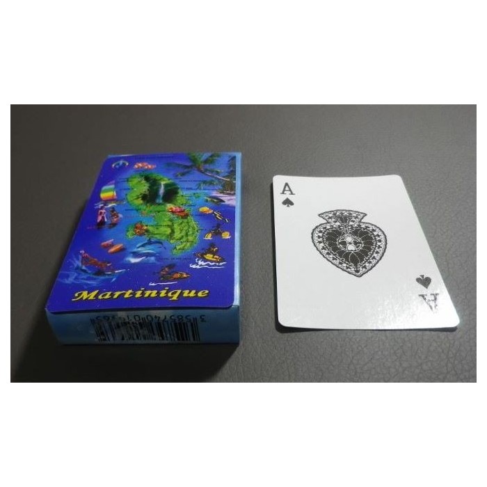 Jeu de 54 cartes avec la carte de la Martinique au dos.