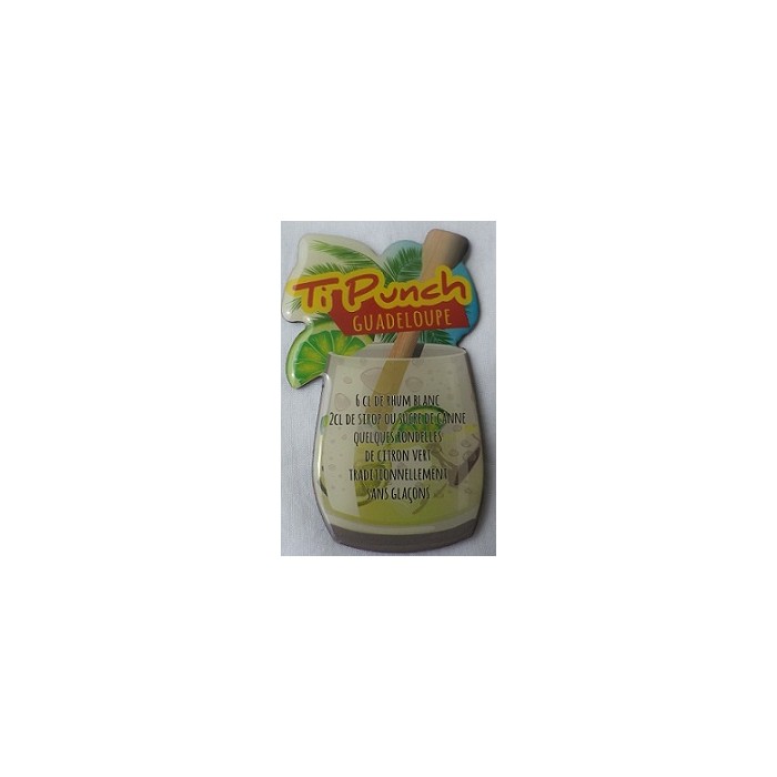 Magnet avec la recette du Ti Punch et inscription Guadeloupe.