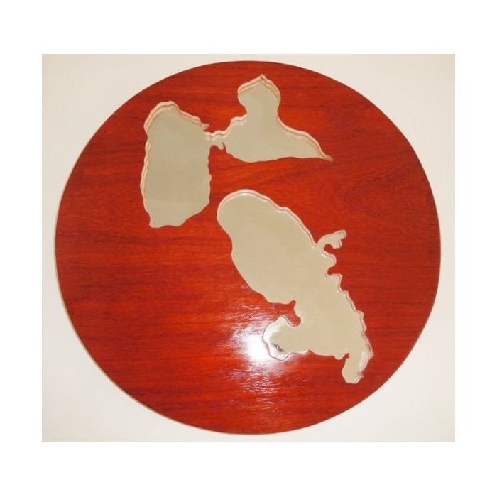 Ce très grand miroir en bois avec les îles de la Guadeloupe et de la Martinique juxtaposées .