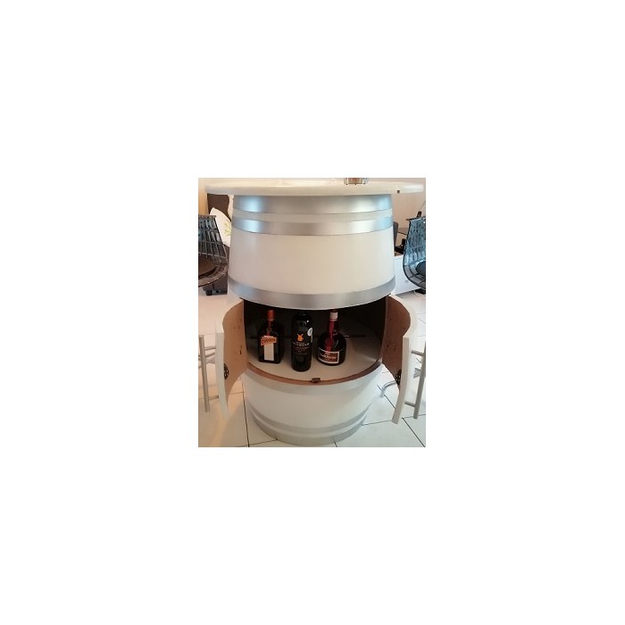 Un véritable bar tonneau avec un plateau rond de 75cm de diamètre, pour servir vos invités