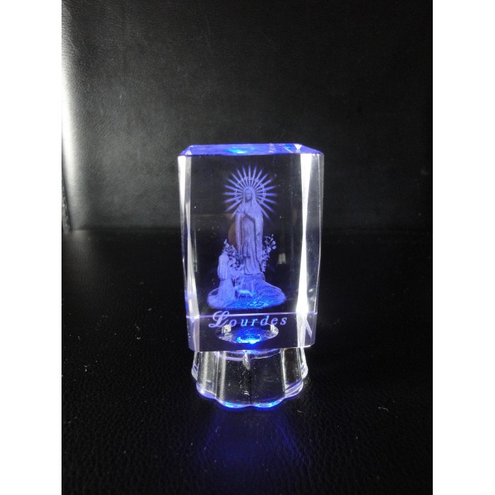 Bloc de verre gravé au laser représentant l'immaculée conception de notre Dames de Lourdes .
