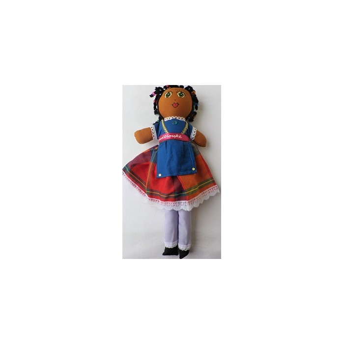 Hauteur 35 cm, habillée d'une robe, ceinture Guadeloupe nouée autour de