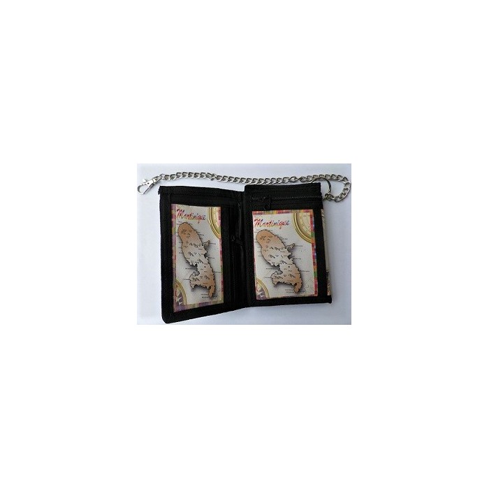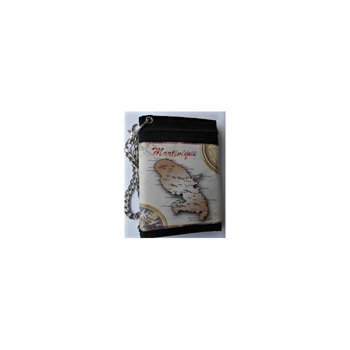 Portefeuilles imprimé carte Martinique avec une chaîne.